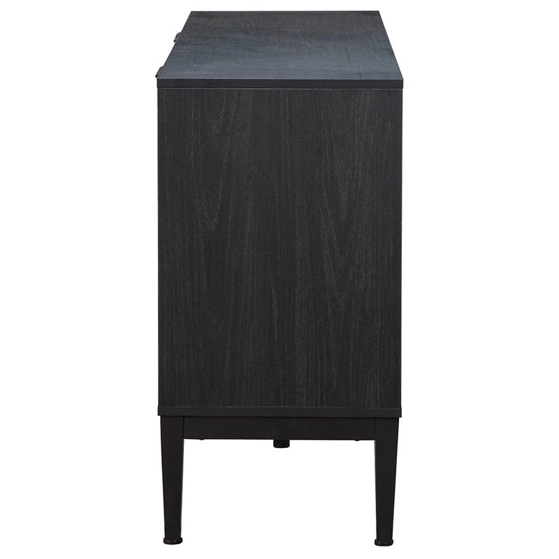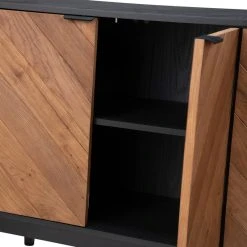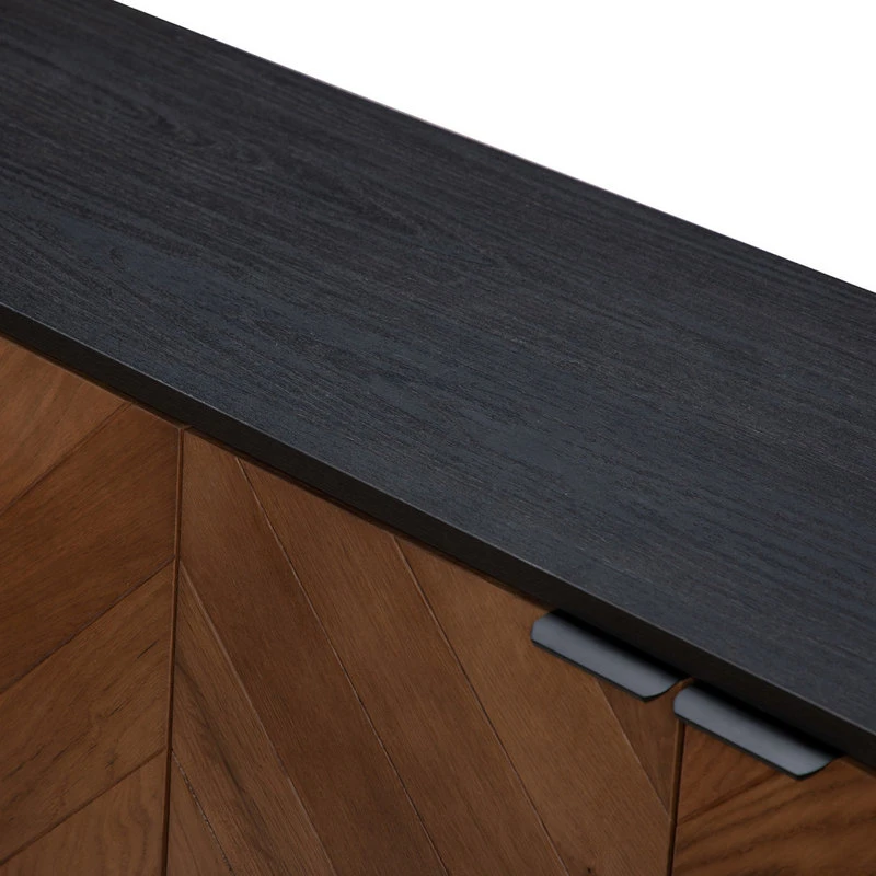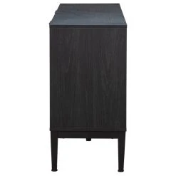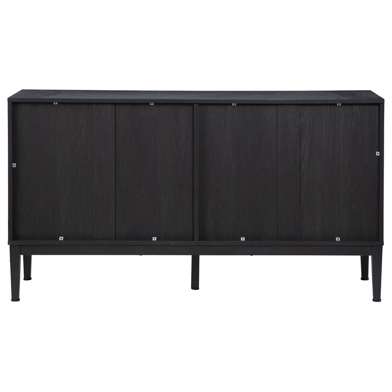 Modern Design: The sideboard features manufactured wood doors with an elegant herringbone pattern design against a clean black painted frame case for a modern feel.