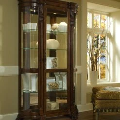 Be the first to review “Lighted Curved Front 4 Shelf Curio Cabinet In Maple Brown By Pulaski Furniture” Cancel reply