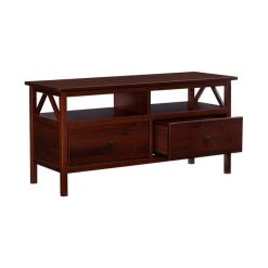 Our Titian Collection has a simple yet eye-catching design that is matched with incredible durability. The TV Stand features a simple body that makes it perfect for any space. A spacious tabletop, open shelf and two deep drawers provide ample storage space for all of your media needs. A neutral, classic Antique Tobacco finish allows this piece to easily complement your homes decor.