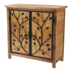 Every room deserves a bit of elegance, and this accent cabinet is a befitting addition with its decorative iron branches on wood doors. Bringing a bit of nature to your decor, the pine wood cabinet is further highlighted by the black metal branches. The black metal frame door insert features tree branches highlighted with leaves and little birds that add to the charm of the cabinet. The gorgeous wood finish coordinates with existing decor beautifully. The cabinet includes an interior shelf, and offers ample storage space for your essentials.