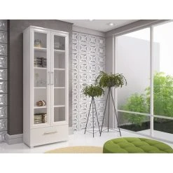 Serra 1.0 Display Closet is the perfect option to store and display books, photos, collectible, trophies, china and silverware. This modern functional unit can be placed in the living room, dining room, bedroom and office. With 2 long glass doors your objects can have a museum display look. Includes 1 bottom drawers to conceal and store items. Upon Assembly Measures: 27.56 in. Length, 71.85 in. Height, 13.98 in. Depth. Available in White and Tobacco.