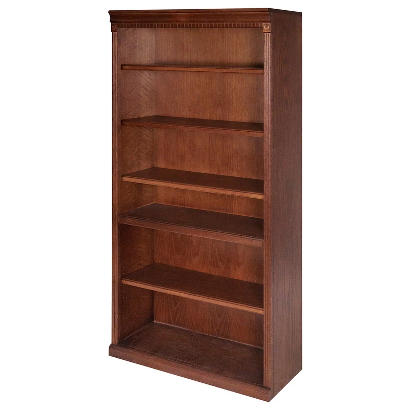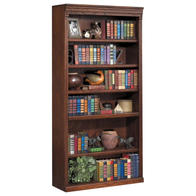 Handcrafted with timeless, classic styling, the Huntington Oxford office collection showcases the beauty of warm burnish brown hardwood solids and veneers. With a high attention to detail, the open bookcase features two fixed shelves for stability and five adjustable shelves for storage. The distressed burnish finish on the Huntington Oxford Open Bookcase presents a unique, worn appearance that will truly withstand time.