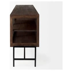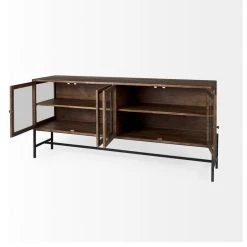 A wood, glass and metal sideboard, perfect for showcasing special trinkets or displaying everyday dinnerware.