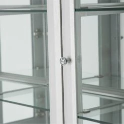 - Bottom side cabinets include 1 glass shelf each, and LED display lighting.