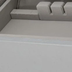 - China and buffet body is upholstered in Dove gray textured vinyl.
