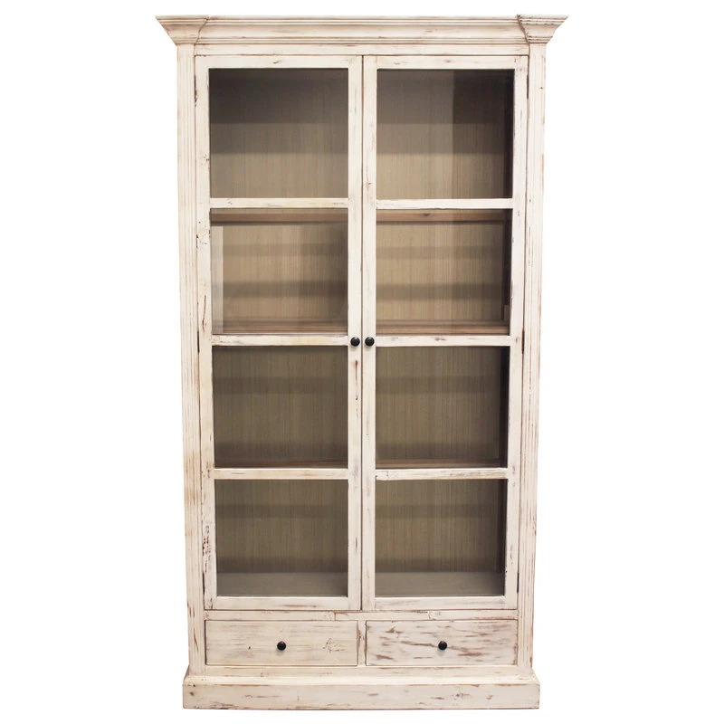 - Features 2 drawers and and 2 doors with 4 interior shelves
