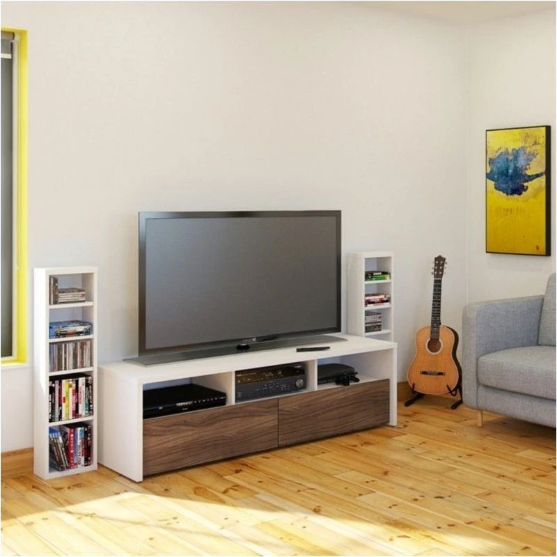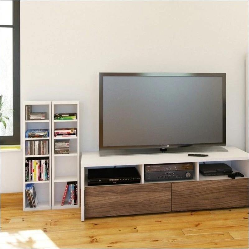 Liber-T CD/DVD Towers from Nexera are sold in pair (2) and come with 3 dedicated spaces for CDs and 2 spaces for DVDs. The towers can be paired with other Liber-T items to add storage and functionality in the living room and the office areas. Liber-T Collection is entirely modular and offers unlimited mix and match possibilities to create your own perfect entertainment or home office room settings. It is offered in a modern white melamine finish with elegant Walnut accents.