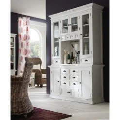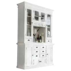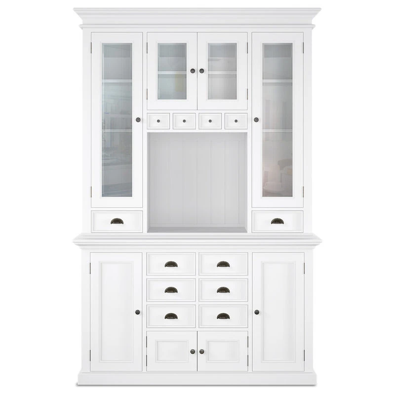 NovaSolo Furniture NovaSolo Halifax Mahogany Wood Buffet Hutch Unit With 6 Shelves In White