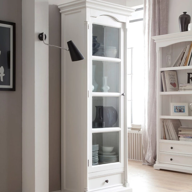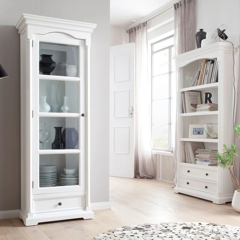 There are some designs that work in a multitude of ways but this glass cabinet looks its best when it’s used as intended to display. With traditional features, from the cornice and side panels to the moulding that picture-frames the glass, it really is a piece inspired by the past. In a living area, store decorative accessories, photo frames and a mini book collection, or crockery, cups and glassware to create a slimline dresser in a kitchen.
