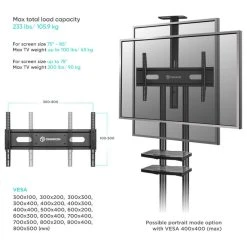 ✔️ UNIVERSAL TV CART: fits most 50-83 Inch LCD, LED flat or curved screens (Samsung, LG, TCL, Sony, Hisense, Vizio, etc.). Fits VESA mounting holes from 200x200mm (min) to 800x500mm (max).
