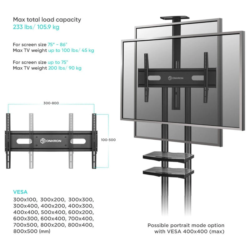 Be the first to review “ONKRON Mobile TV Stand With Wheels Rolling TV Cart For 50-83″ TVs Up To 200 Lbs” Cancel reply