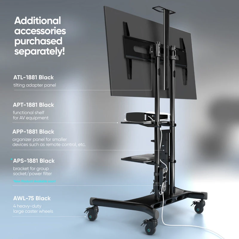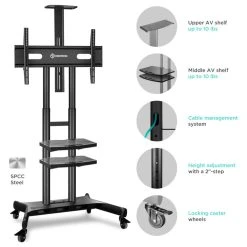 SKU: TS1881-B Categories: Entertainment Centers & TV Stands, Media Storage Tags: AV cart furniture, AV stand mobile, Height adjustable, Houzz TV, Sturdy, TV Cart, TV flat screens television, Tv mount, Tv stand, TV stand on wheels for LED LCD OLED HD TV 4KTV, With shelves, With wheels