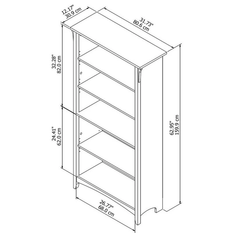 This 5 Shelf Bookcase brings a country flair with a hint of timeless mission styling into your home. Built with 3 adjustable and 2 fixed shelves, display your favorite photos and decorations with the casual charm.