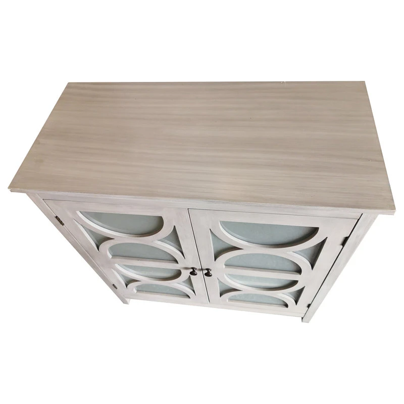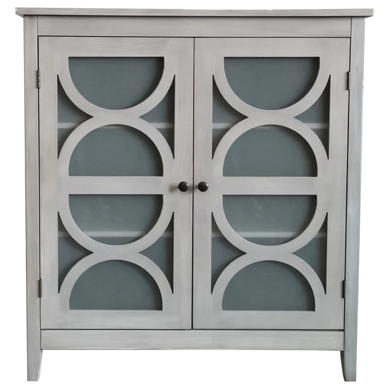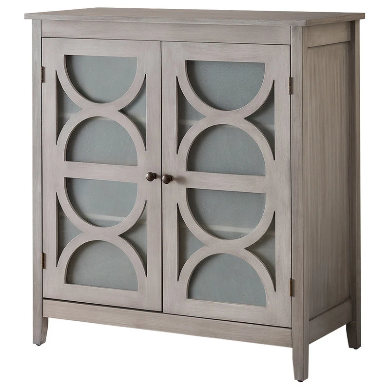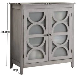 Pasco 2 Door Entryway Accent Display Cabinet With Storage Shelves & Frosted Glass Doors, Wash Gray Wood, Contemporary. Whether you’re looking for a simple storage solution in the living room or setting the stage for a low-key display in the den, this understated Pasco Accent Cabinet brings a bold touch to your space without stealing the show. Featuring a clean-lined wood frame and two frosted glass-paneled doors with moon shaped details, this Pasco Accent Cabinet makes a versatile and impactful addition to your environment. Crafted from manufactured wood, this piece features two bronze knob doors that open to reveal two shelves, perfect for tucking away linens, tablecloths, placemats, and much more.
