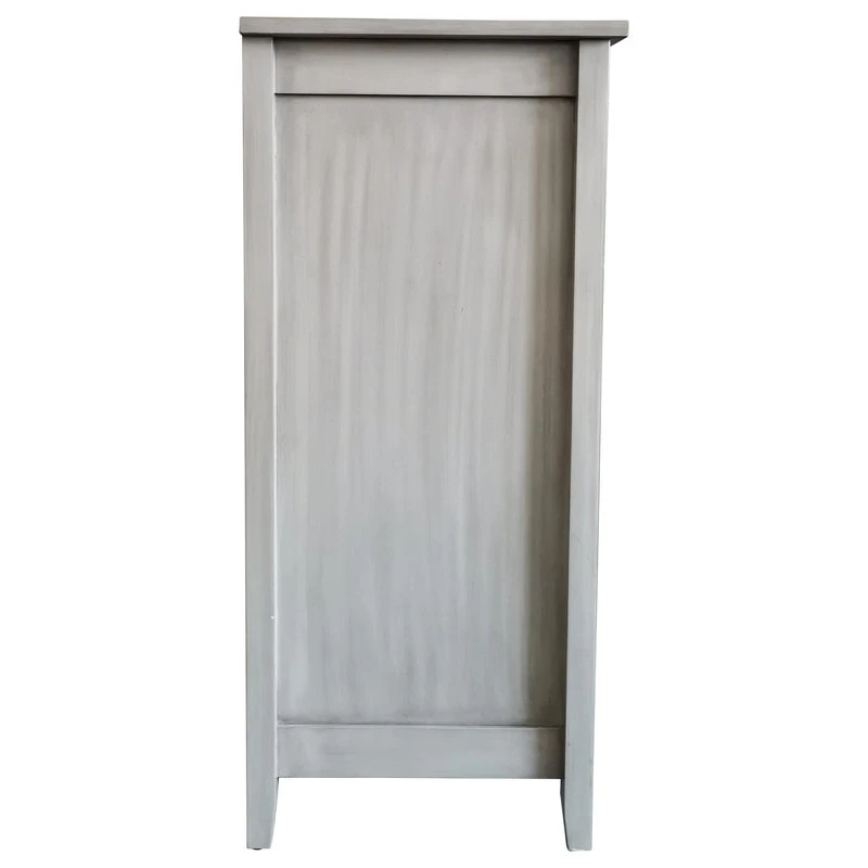 - Finish: Wash Gray, Bronze Knobs. Materials: Engineered Wood Products, Glass Cabinet Doors.