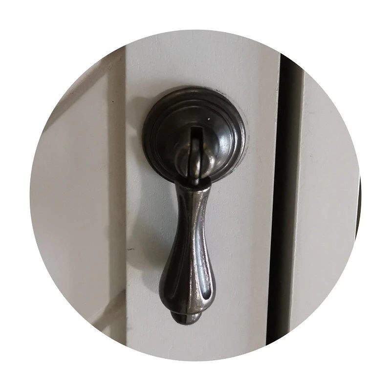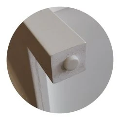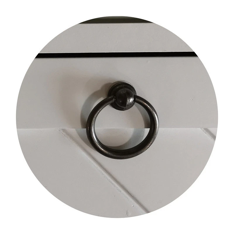 - Finish: White; Bronze Knobs & Handles; Nickel Hardware