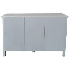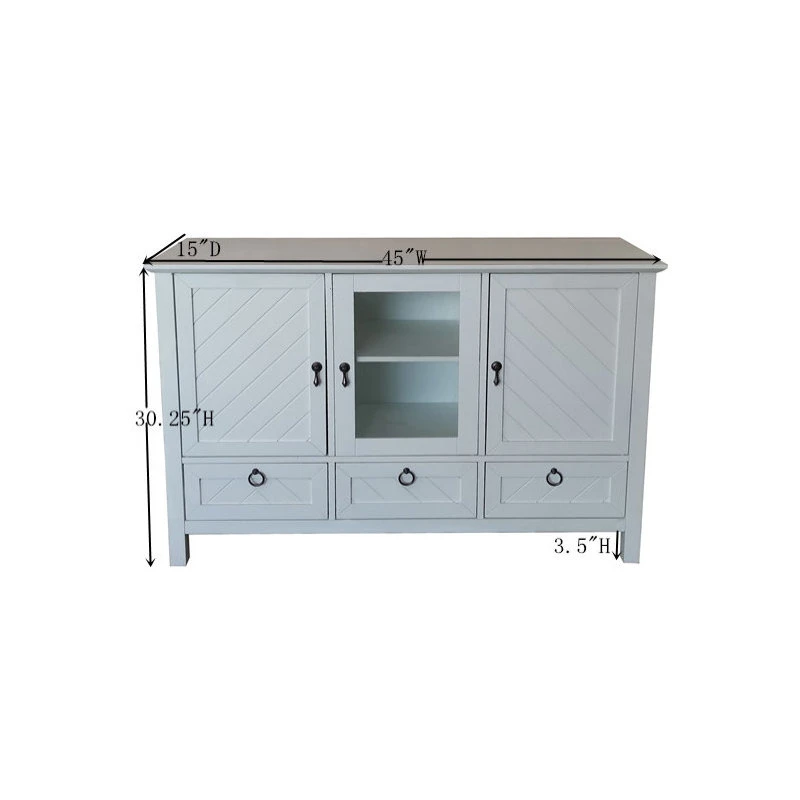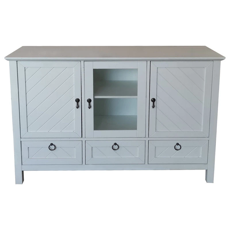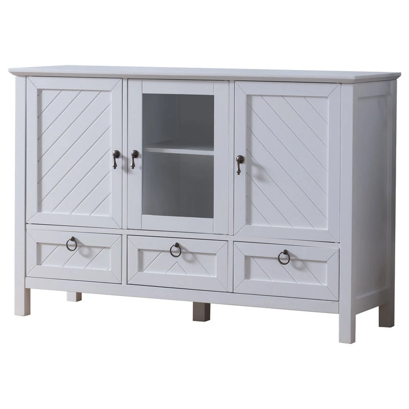 - Materials: Engineered Wood Products; Solid Wood Legs; Glass Center Cabinet Door; Metal Knobs & Handles