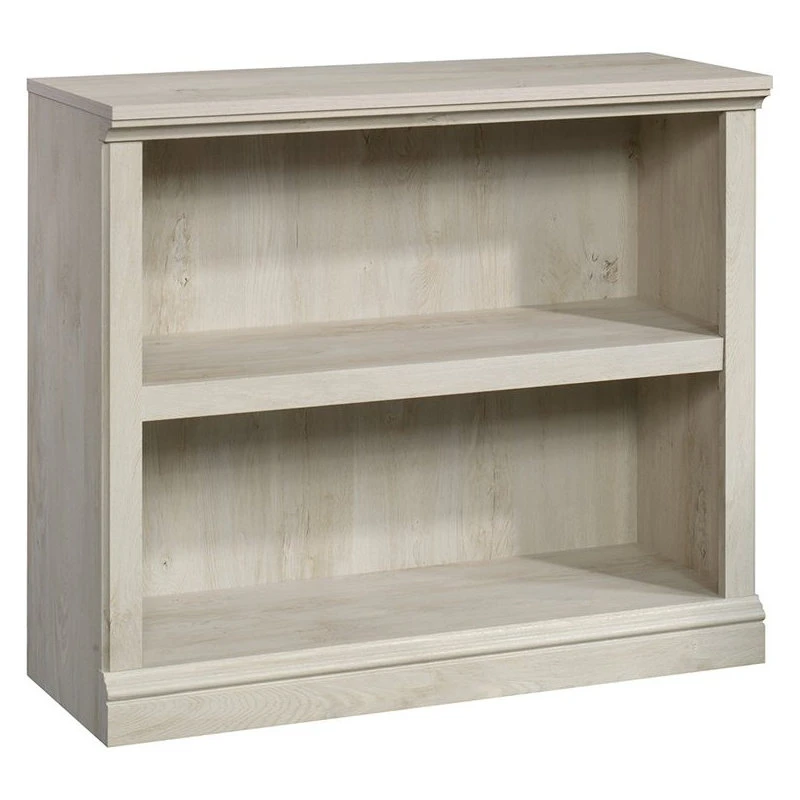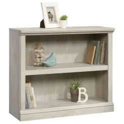 Simple storage where you need it. This 2-shelf bookcase from the Sauder select collection offers you the ideal amount of space while adding a touch of style to your home decor. It features one adjustable shelf for you to modify and move to different heights to accommodate any small, large, or misshaped items you may have. Its two spacious shelves make the perfect spot to store and display anything from a bin full of crafting supplies and a series of novels to decorative plants and knick-knacks. Its large table top surface also makes a great area to display an accent lamp and pictures of the family. This charming bookcase adds beauty no matter where it stands – in the living room, down the hallway, the entryway, or even in the bedroom! It has so much to offer! Finished in chalked chestnut, this attractive bookcase gives your home the style you want with the functionality you need.