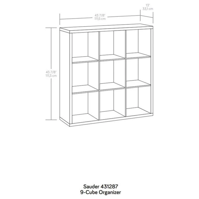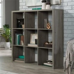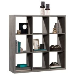 Is organization an issue in your home? Look no further! Create the storage and organization that your home needs without having to sacrifice on the style that you love with this 9 cube organizer from the Sauder Select collection. This storage bookcase features nine spacious cubbyholes that are perfect for storing your collection of books, stacks of magazines, and spare blankets. These cubbies also make a great place to display home dรฉcor like decorative plants and framed photos of the family. Each cubby shelf can also hold 13-inch storage bins (sold separately) for additional hide-away options that allows you to contain and conceal clutter. The spacious top surface of this 9-cube storage offers additional display for items like a table lamp and framed art. Cube organizers, like this one, have a place for all your things! Finished on all sides, this cube storage bookcase will look great in any room of your home. Finished in Mystic Oakยฎ, this cubby bookshelf will have your home looking tidy in no time!