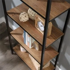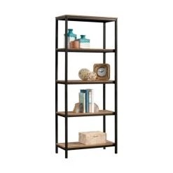 For the perfect place to display your favorite treasures, look no further. Store more than just books on this 4 shelf bookcase from the North Avenue® collection. This tall bookcase features 4 spacious shelves that are perfect for displaying a variety of different items like your collection of knick-knacks, decorative plants, and framed photos of your family and friends. These roomy shelves on this wood and metal bookcase also make a great spot to stow items like work binders, stacks of papers, and organizing bins. With a simple design that complements your current home aesthetics while showcasing the items you place on it; this open shelf bookcase has the multifunctional purpose you’ve been looking for. It’s finished on all sides for versatile placement in any room of your home – the living room, dining room, or in the bedroom. This open shelf storage bookcase adds style and functionality no matter where it stands. Finished in Sindoori Mango® and detailed with a durable, black metal frame, this tall bookcase with shelves is everything your home needs and more.