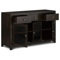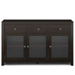 The solid wood Cosmopolitan Sideboard Buffet has plenty of storage and space for all your dining and entertaining needs. The buffet features 3 drawers and three large storage cabinets that open to one adjustable shelf each.