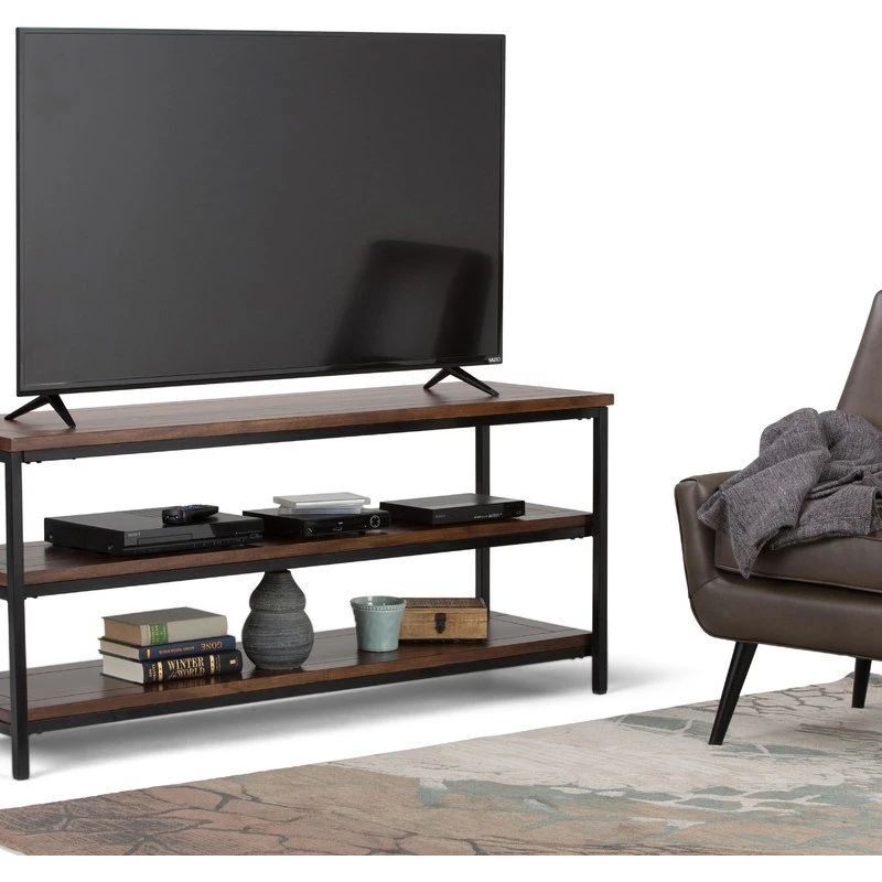 Skyler furniture is industrial in sensibility, modern in approach and perfect for the stylish individual who is looking for that unbelievably stunning and practical TV Stand for TVs up to 65 inches wide. The box shaped steel metal base with black finish mixed with solid Mango Wood fits smoothly into most modern, contemporary or eclectic home designs.