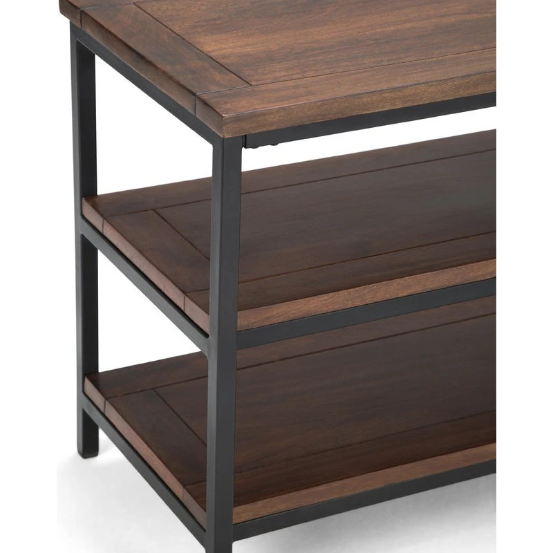 - Feature two (2) large open shelves & black metal frame and Legs