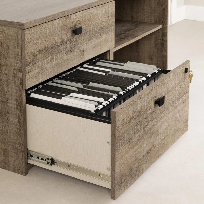 PRACTICAL�STORAGE: you can be sure your documents will be properly filed and secure in the bottom large drawer of this credenza, which can be locked with a key and was especially made for 8��x11� or 8��x14� files. As for the top drawer, it can hold p