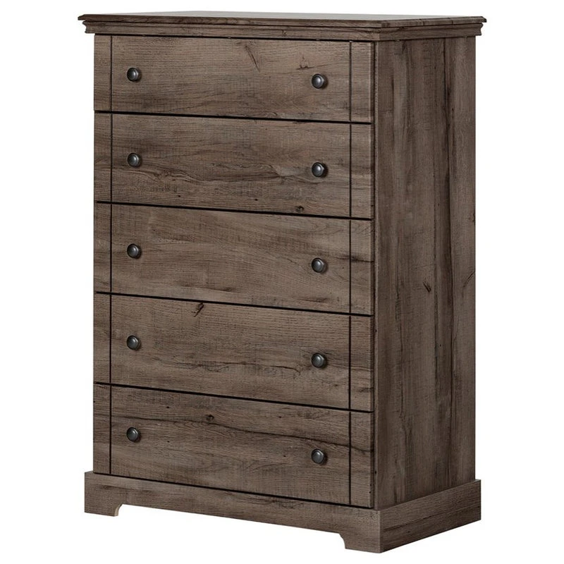 South Shore is proud to stand behind this 5-drawer chest dresser with an exclusive 5-years limited guarantee. Shop with confidence knowing your purchase is always covered. All our products meets or exceeds North American safety standards and our packaging are tested and certified to reduce the risk of damage during shipment. There is a wall anchor kit included in the box to prevent tip-over incidents, thus ensuring your family’s safety. This item is shipped in 1 box, make sure to have a friend with you. Assembly is required by 2 adults and tools are not included. If you have questions regarding this product or need assistance do not hesitate to contact South Shore Furniture 7 days support. This product is made in North America with laminated particleboard. Accessories not included.