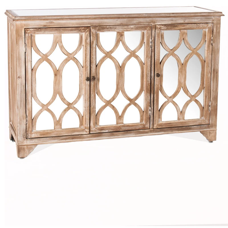 Update your home decor with the gorgeous Hannah Buffet. A versatile piece features mirrored doors, detailed wood overlay and natural, neutral hues. Accessorize the Hannah Buffet with your favorite vases and photo frames to add your own personal touch and complement your current home decor. A functional and stylish piece that will effortlessly elevate any space of your home.