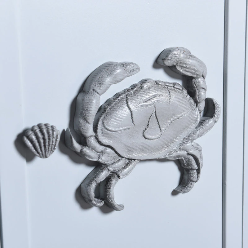 - Sea shell drawer pulls with decorative sea animal relief for each door front