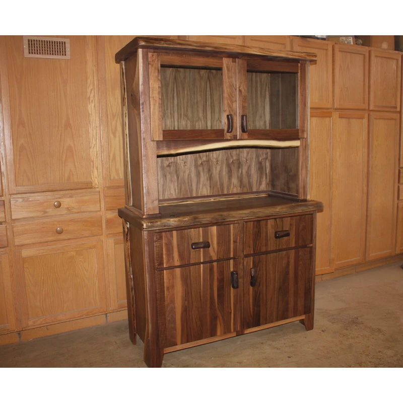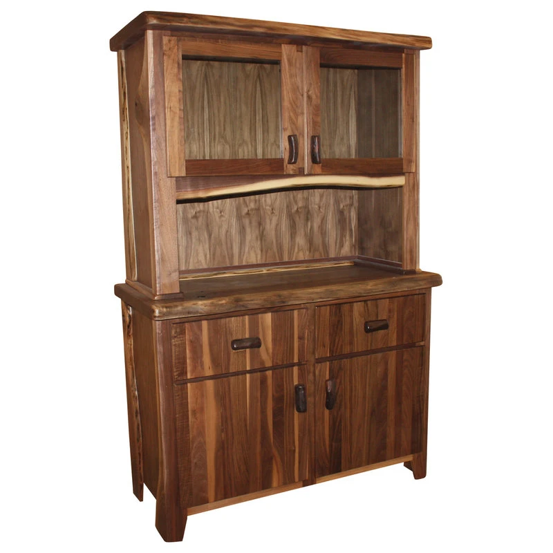 Add rustic charm to your living space with the Walnut Hutch from Treemendous Designs. Handcrafted by a family-owned and operated log furniture business in northwest Indiana, this hutch features a sold wood construction and stands 74 inches tall, 48 inches wide and 20 inches deep. The hutch has two drawers and two doors that allow for ample storage space underneath while the glass-paned hutch allows for beautiful decorative displays.