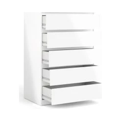 Staying organized becomes easier with the Scottsdale 5 Drawer Chest. Providing ample storage in its five roomy drawers, the chest will be a functional addition to any room. From delicates to bulky sweaters, the Scottsdale chest can store various items while offering a modern, sleek look that merges seamlessly with any d�cor. With metal drawer glides for smooth movement the chest is a sturdy, yet simply designed piece. The finish is easy to clean, scratch, and stain resistant making it an ideal choice for families or college living. Combine this chest with other Scottsdale bedroom pieces to complete the look.