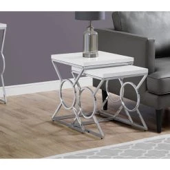 Monarch Specialties Nesting Table, Set Of 2, Side, End, Accent, Bedroom, Metal, Glossy White