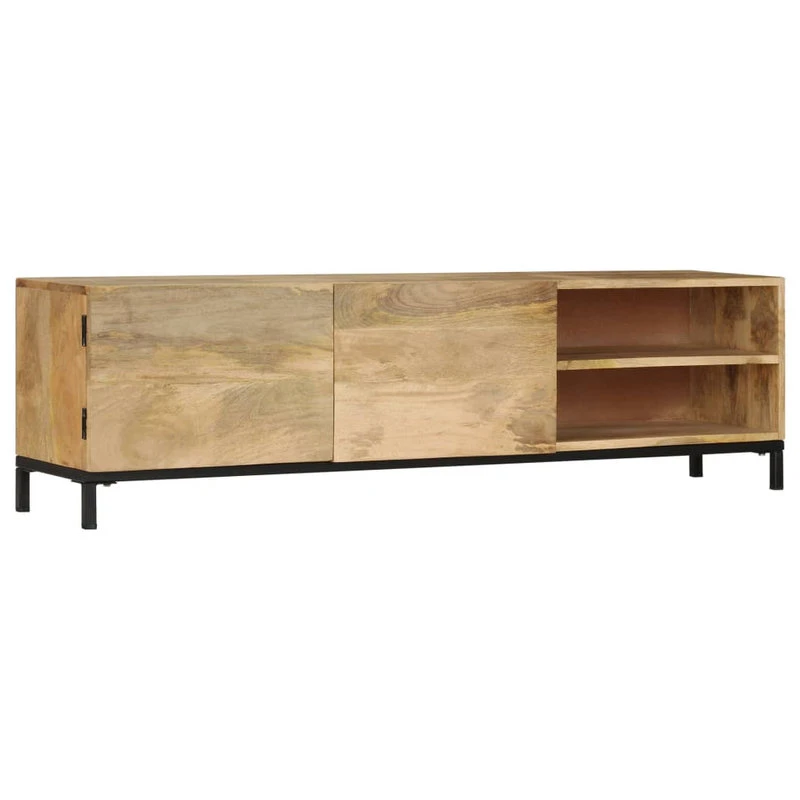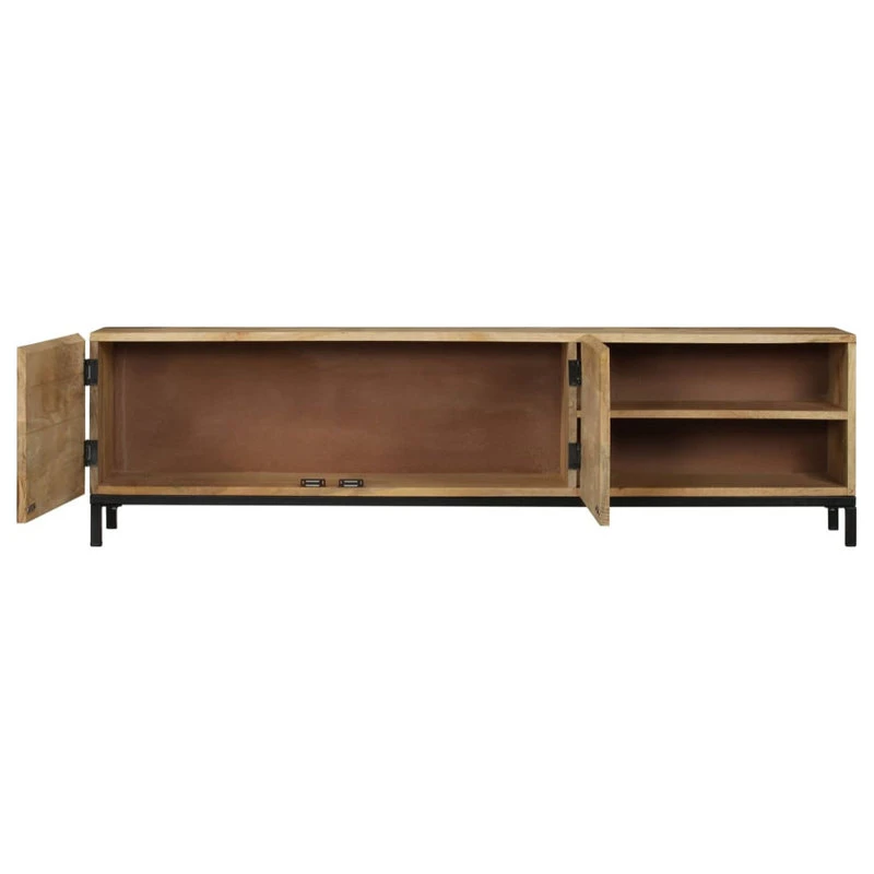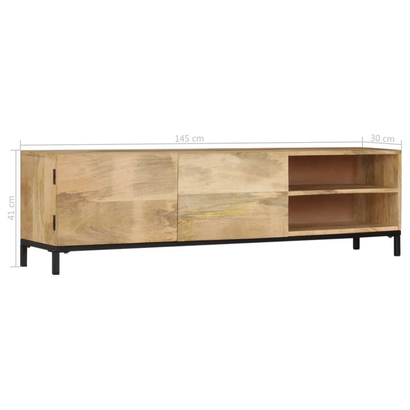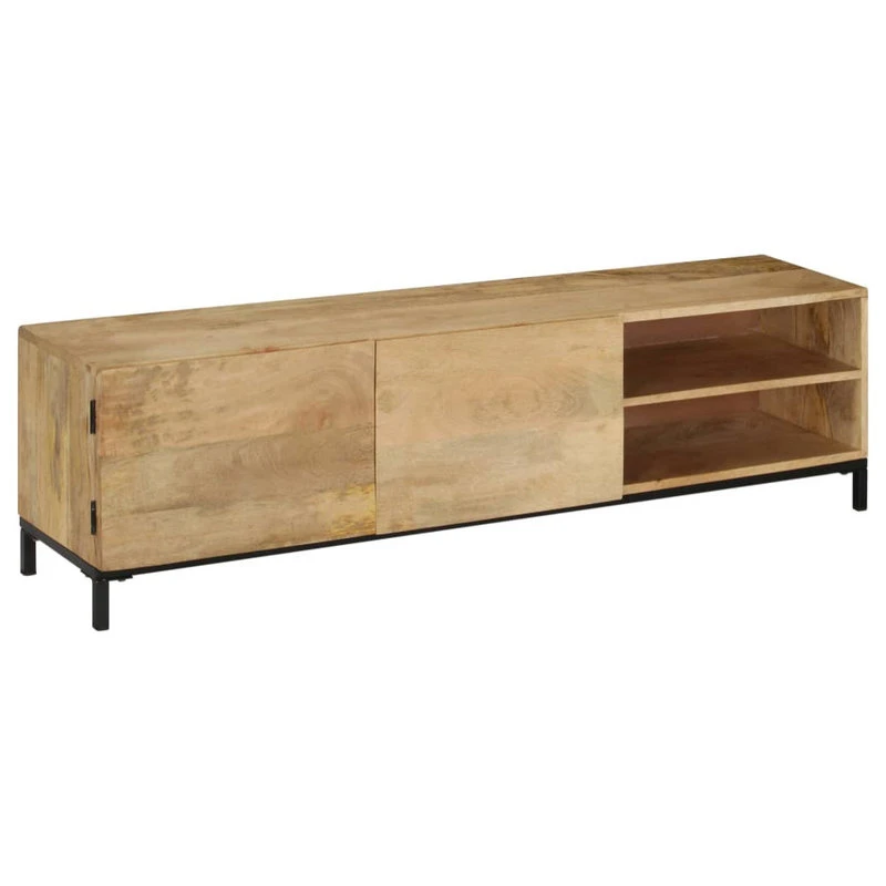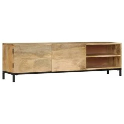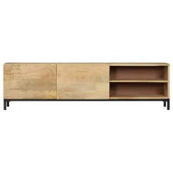 This antique-style wooden TV cabinet exudes a vintage charm and will make a timeless addition to your interior. This HiFi cabinet is made of solid mango wood, which is a hardwood with dense grains. Rough mango wood on the one hand has the strength to bear the weight, on the other hand stand the wear and tear of time. Therefore this beautifully-designed side cabinet is stable, durable and eye-catching. The perfect craftsmanship guarantees that every step of the process is carried out with the greatest care, be it polishing and lacquering. Besides, this sideboard features 1 cabinet with 2 doors and 2 compartments, providing ample space for storing your multimedia appliances, books, and various other items. Important note: The colors and grains vary from piece to piece, making each piece unique; the delivery is random.