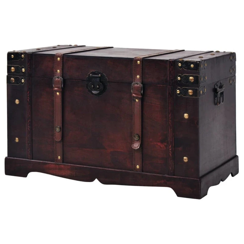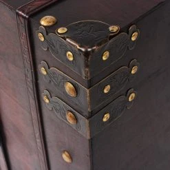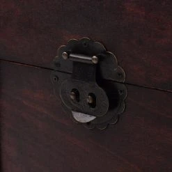 This beautiful antique-style wooden storage chest will not only make a striking decorative addition to your living room or bedroom decor, but also has ample space for keeping a wide range of items like clothes, magazines and books organized and out of sight. It has a convenient latch closure and is portable thanks to two side handles.