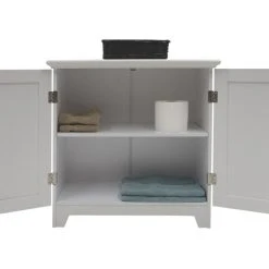 Shaker Style Double Door Cabinet, WhiteThis Double Door Floor Shelf from the Contemporary Country Collection is great for extra storage and organization in any bathroom. This Double Door floor shelf has an adjustable shelf hid behind the door panels. The sleek solid shaker style double doors on this floor cabinet are detailed in design and give a little more to the eye appeal. The Contempoary Country Line has many different styles, pieces, and colors to choose from. They are all ready to assemble, with all pieces being easy to assemble in minutes (simple instructions are included). Assembly instructions include 1-minute video links where assistance may be needed. The quality materials used along with a clean contemporary appeal will adorn any dοΏ½cor` for many years. All pieces of the Contemporary Country Collection are sold separately and available in a variety of colors.