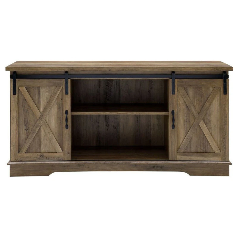 Include our Sliding Barn Door TV Console in your home to not only bring a rustic, country feel to your living area, but create ample storage for all of your media, accessories, and more. Constructed of high-grade MDF, this durable, long lasting stand supports most TVs up to 65″ and is the perfect solution for keep your living room looking neat while providing farmhouse charm.