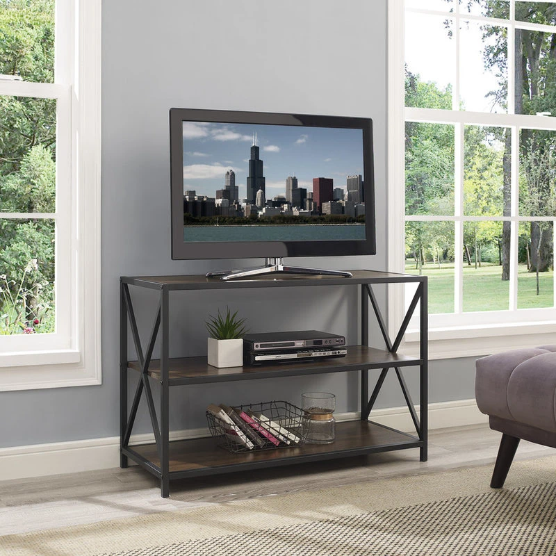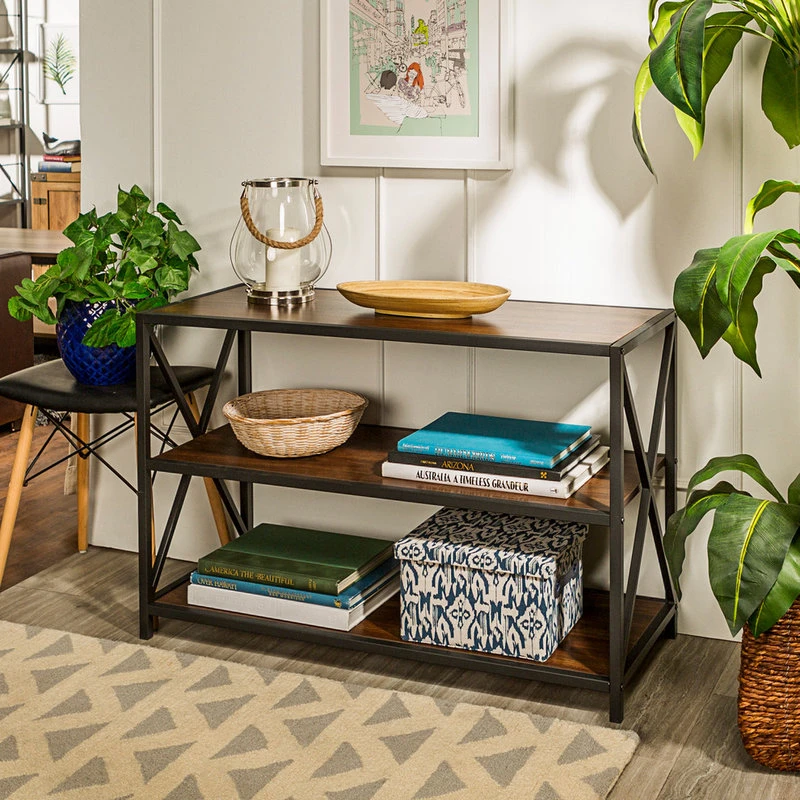 Showcase your books, magazines, media, and more with this beautiful bookcase. Durably constructed of high-grade MDF and powder coated metal, together create a sturdy, yet stylish shelving unit. The combination of metal and wood with x-shaped sides give a rustic farmhouse aesthetic, perfect for your entryway, bedroom, or living room. This bookshelf can make an urban industrial style statement, while also providing you with space to store your things. Decorate with your book collection, plants, and artistic elements to match your living space.