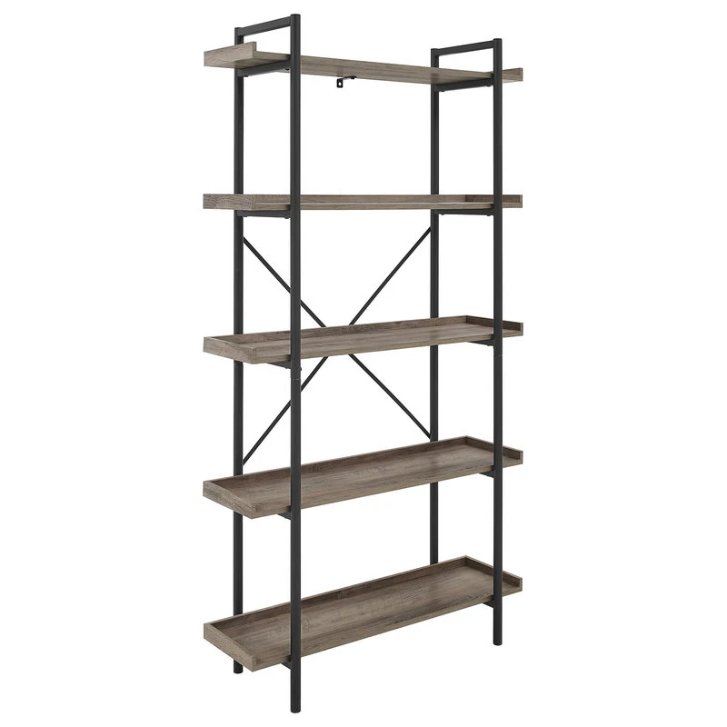 This 5-shelf urban pipe bookcase is perfect for a trendy, industrial-chic look. With a durable metal frame, and a sleek woodgrain finish made from high-grade manufactured wood, this piece is reliable to hold all of your books, trinkets, and collectables, while complementing any home office, hallway, living room, or bedroom.