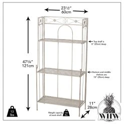 Strike the perfect balance of form and function in your space with this rustic baker’s rack. Organize shelf by shelf and let this storage task master hold the things you need close at hand. 3 open-work tiers with perforated daisy details offer exceptional convenience by delivering fast, beautiful and easy storage.