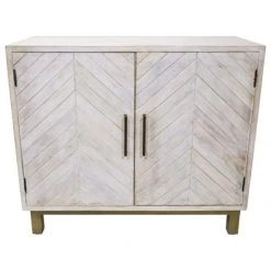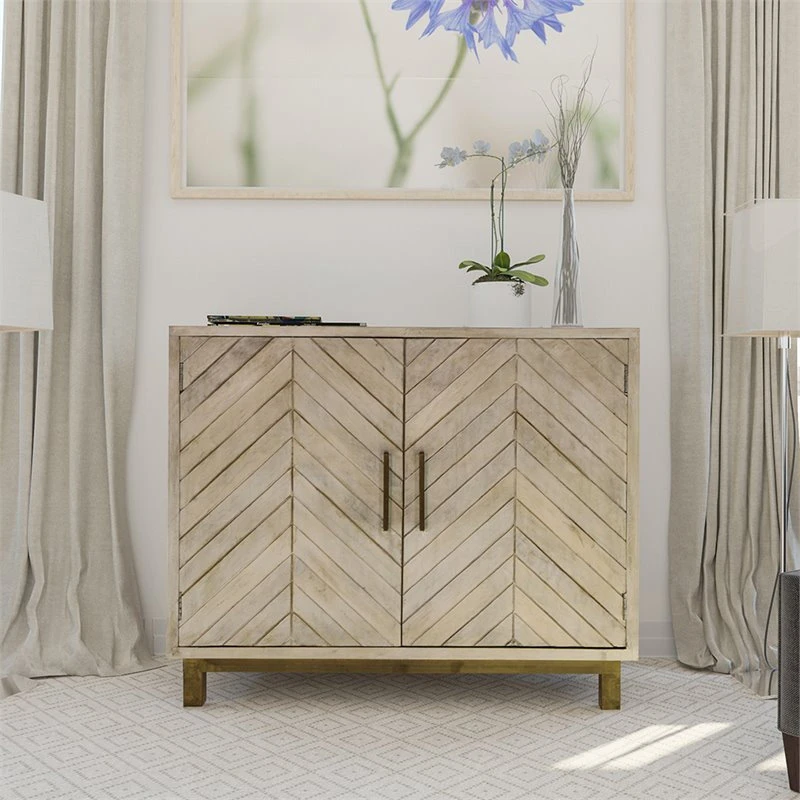 The Ashdla accent console table by Yosemite Home Decor is made from solid mango wood and has been handcrafted for style and storage convenience. Combining classic style with contemporary design this double door cabinet comes with a single inner shelf, and the light gray color will easily complement any living space, as well as add brightness and simplistic charm to your environment. Each cabinet is completed in an amazing lime wash finish and comes with a solid antique brass metal base and hardware. Each piece is a unique work of art, so slight imperfections are inherent to the handcrafted style, and no two are exactly alike. Dust with a soft dry cloth, and periodically use furniture polish or wax. Do not leave spills unattended. Protect from heat as wood expansion and contraction could occur with humidity.