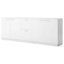 Zuri Furniture 86.5″ Modern Reagan White Matte Lacquer Cabinet Filing Drawers Shelf Storage