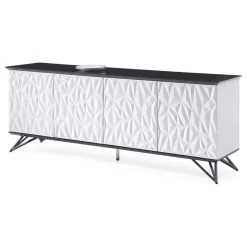 Zuri Furniture 78.6″ Modern Vortice Buffet Black And White Lacquer Matte Black Legs