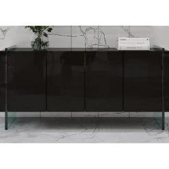 Zuri Furniture Modern Art Buffet Black Lacquer Cabinets Tempered Glass Base