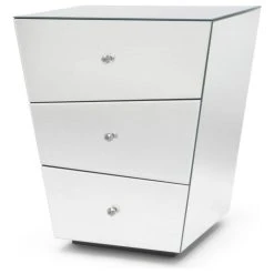Zuri Furniture Modern Vailan Side Table Clear Mirrored Glass Finish 3 Drawers Clear Pulls